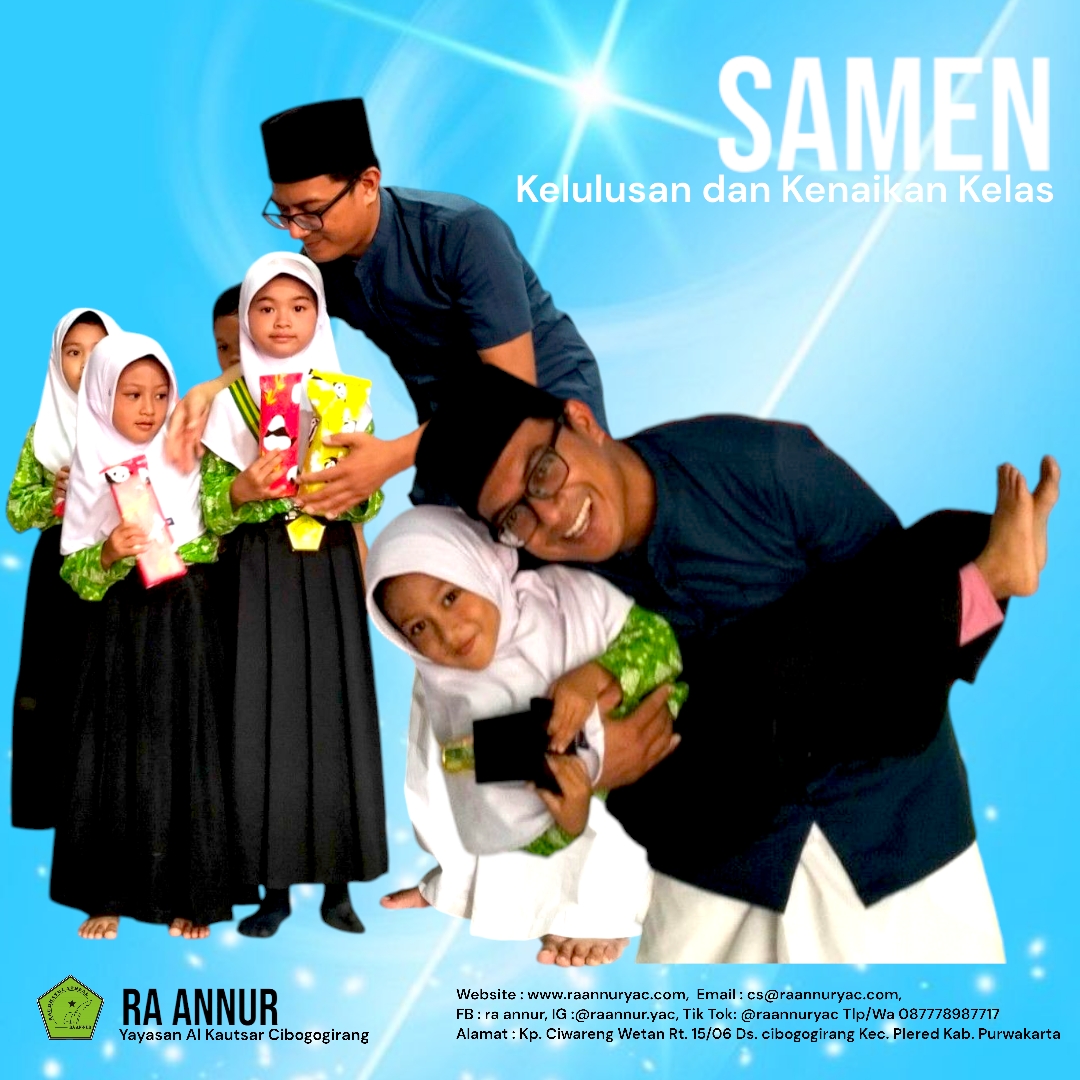 Samenan di RA Annur: Perpisahan Sederhana yang Penuh MaknaAcara kelulusan dan kenaikan kelas di RA Annur tahun pelajaran 2024-2025 telah usai dengan sukses, mengusung tradisi lama yang kaya makna, yakni “samenan”. Meski sederhana, acara ini meninggalkan jejak mendalam bagi anak-anak dan orang tua, menjadi momen refleksi sekaligus harapan. Melalui penampilan anak-anak dan pembagian hadiah prestasi, pesan tersirat tentang pentingnya membaca, menulis, dan berhitung dititipkan sebagai bekal...